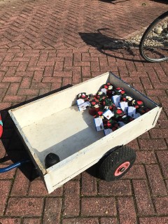 En weg zijn ze! Nadine en Esther maken zich sterk voor de ouderen in Armenie! Samen gaan ze de eigengemaakte aardbeienjam van beppe verkopen. Namens de stichting help de ouderen in Armenie : Super bedankt Nadine en Esther en de jam maakster!!